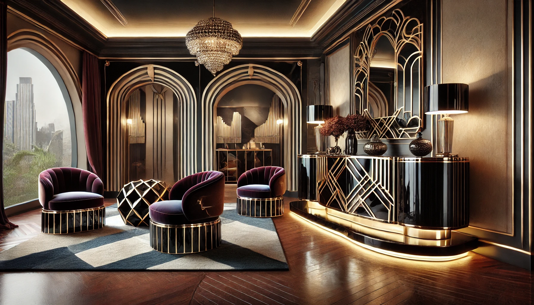 In contemporary design, Art Deco is reinterpreted in a modern key through furniture and furnishing accessories that reproduce its geometric shapes, luxurious materials, and sophisticated finishes. Art Deco interiors still stand out today for their timeless elegance and the ability to convey a sense of exclusivity.