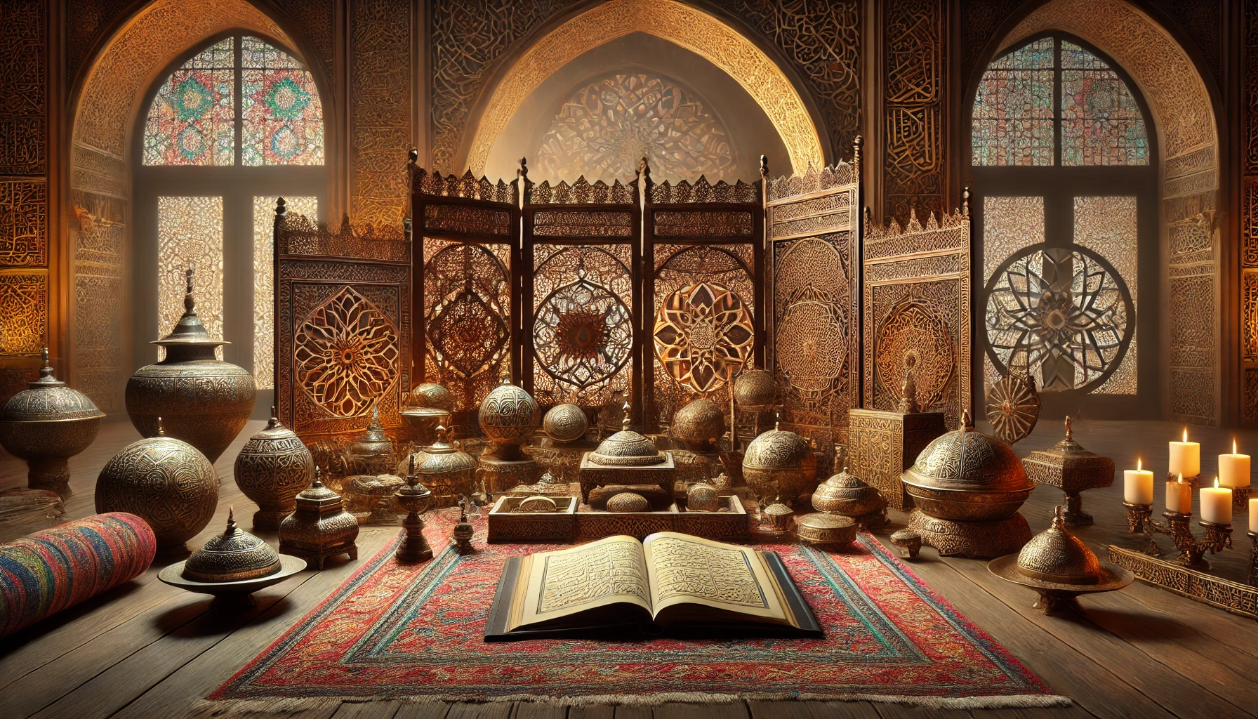 - Persian and Ottoman Carpets: Created using hand-knotting techniques, Islamic carpets are not only decorative elements but also valuable investments in art. Each carpet tells a story through its floral, geometric, and calligraphic motifs.