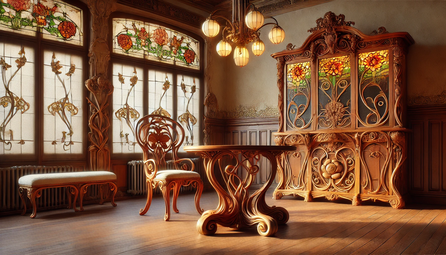 Les meubles Art Nouveau étaient conçus pour s’harmoniser avec l’architecture et les éléments décoratifs des intérieurs, créant des ambiances raffinées et immersives. Parmi les pièces les plus emblématiques de ce style, on trouve :